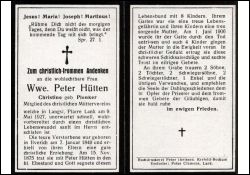 ∞ 15.11.1875 Peter Hütten, † 1.6.1906; 8 K., davon 4 †; |