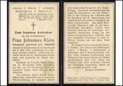 ∞ 15.11.1924 Johannes Klein; 1 K.; |