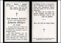 Tod durch Unglücksfall; ∞ 15.10.1904 Katharina Thelen; Druck in Lank |