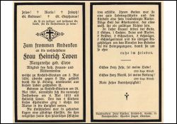 Mitgl. Kath. Frauen- u. Mütterverein; ∞ 6.5.1913 Heinrich Leven; 4 K., davon 1 Sohn †; |