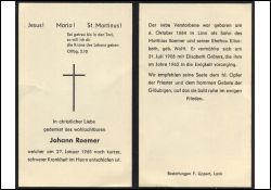 Eltern: Matthias Roemer u. Elisabeth geb. Wolff; ∞ 31.7.1908 Elisabeth Gröters, † 1962; Druck in Lank |