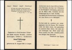 Landwirt; ∞ 13.6.1922 Katharina Neuhofs, † vor 5 Monaten; Druck in Lank |