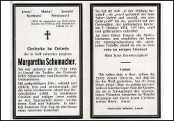 Jungfrau:; Eltern: Peter Schumacher u. Elisabeth geb. Geilenkirchen; Sie trug das Kreuz einer schweren Krankheit. |