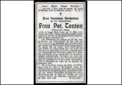 Schlaganfall; ∞ 23.10.1880 Peter Tenten; 6 K., davon 1 Sohn †. 2 Söhne Soldaten im 1. Weltkrieg |