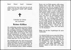 Landwirt; ∞ 6.1.1911 zu Köln Agnes Klein, † 1953; 5 K.; einzige Tochter †; 1 Sohn im 2. Weltkrieg gefallen |