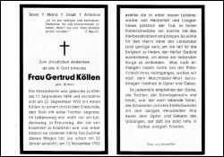 ∞ 22.9.1922 Anton Köllen; 1 Tochter; Kreuzweg von Krankheit zu Krankheit (Habbelrath) |