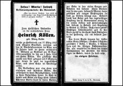 ∞ 1.2.1883 Heinrich Köllen; 6 K., davon 2 früh †, 1 Sohn im 1. Weltkrieg gefallen |