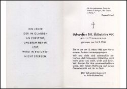 M. Hildelitha MSC, Sw, geb. Timmermann | Vorname: |