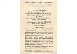 Maria Sidonia, Sr., geb. Strüber | Vorname: |