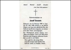 ∞ 27.5.1950 Maria Hilgers aus Lipp; 4 K., davon 2 †; Druck in Bedburg/Erft |
