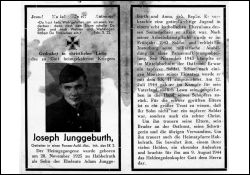 Gefallener 2. Weltkrieg; Eltern: Adam Junggeburth u. Anna gab. Repke; seit Frühj. 1943 Soldat; seit Nov. 1943 an der Ostfront; Bruder ebenfalls an der Ostfront |