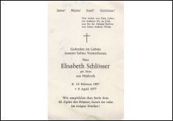 Schlösser, geb. Ehser (Eßer) | Vorname: |