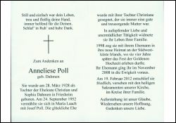 Eltern: Christian und Sophia Dahmen; ∞ 24.9.1952 Josef Poll † Nov. 2008; 1 K. |