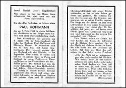 Gefallener 2. Weltkrieg; Sanitäter; † im Feldlazarett (Unfall, Nierenentzündung); Eltern: Paul Hoffmann u. Elisabeth geb. Thelen; ∞ 15.7.1933 Käthe Zimmermann; 4 K.; Heldenfiriedhof Sillein (Slowakei) |