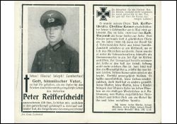 Eltern: Joh. Refferscheidt und Christine Reimer; ∞ 10.2.1929 Katharina Sinzenich; 3 K.; Gefallener 2. Weltkrieg |