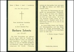 Eltern: Heinrich Gillet und Elisabeth Lauterborn; ∞ 1913 Peter Schmitz aus Bliesheim 1928 †; 5 K. davon 1 † |