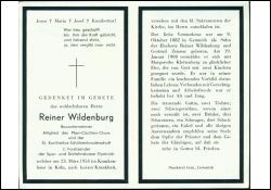 Bauunternehmer; Eltern: Reiner Wildenburg und Gertrud Zensen; ∞ 19.1.1908 Margarethe Klettenberg; 2 K.; Mitgl. Cäcilienchor, St. Kunibertus-Schützenbruderschaft, 2. Vors. Spar- u. Darlehnskasse Gymnich |