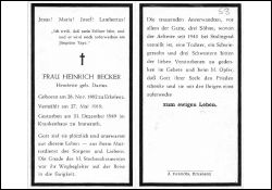 ∞ 27.5.1919 Heinrich Becker; 3 Söhne, davon der älteste im 2. Weltkrieg seit 1943 bei Stalingrad vermisst; Druck in Erkelenz |