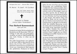 ∞ 15.11.1919 in Blatzheim Gerhard Gummersbach; 1 Sohn: Tod nach 5 Wochen nach einem Blutsturz |