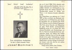 Lange, schmerzvolle Krankheit; Eltern: Ludwig Bommert u. Wilhelmine geb. Deutz; ∞ Hedwig Krall; 2 Söhne; 1 Jahr Krankenlager; Druck in Erkelenz |