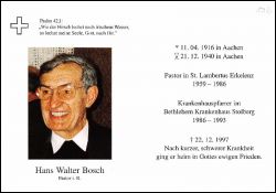 Priesterweihe Aachen 21.12.1940; Pfarrer an St. Lambertus in Erkelenz 1959-86; Krankenhauspfarrer im Bethlehem-Krankenhaus in Stolberg 1986-93 |