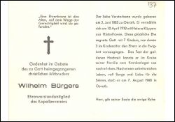 ∞ 10.4.1918 Helene Küppers aus Hückelhoven; 7 K., davon 3 früh †; Ehrenvorstandsmitglied des Kapellenvereins |