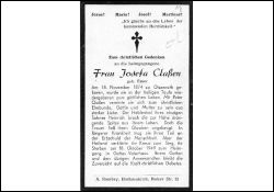 ∞ Peter Claßen; einziger Sohn Heinrich im 1. Weltkrieg gefallen; Druck in Hochneukirch |
