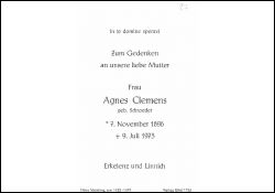 Clemens, geb. Schroeder | Vorname: |