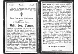 ∞ 14.1.1888 Maria Christina Dautzenberg; 12 K.; längeres Leiden; Druck in Erkelenz |