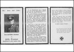 Gefallener 2. Weltkrieg; Eltern: Josef Cremer u. Katharina geb. Broich; ∞ 7.5.1942 Maria Brungs aus Kleintroisdorf; Zwillingskinder; 13.6.1940 Einberufung; Einsatz in Norwegen, dann Ostfront |