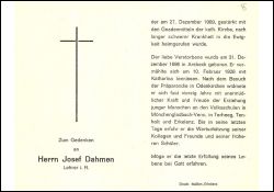 Lehrer i. R.; ∞ 10.2.1926 Katharina Jennissen; Präparandie in Odenkirchen; danach 40 J. Lehrer in Mönchengladbach-Venn, Terheeg, Tenholt u. Erkelenz; Druck in Erkelenz |