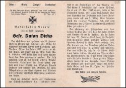 Gefallener 2. Weltkrieg; Freiwilliger b. Marine: U-B∞t; Eltern: Gerhard Dirks, † 29.5.1927, u. Catharina geb. Broders, 9.10.1932; Vollwaise; fand mit älterem Bruder bei Onkel Arnold Dahmen u. Therese geb. Broders (3 eigene K.); Schlosserhandwerk; 1.10.1941 Freiwlliger b. der Marine; Untergang des U-B∞tes bei seiner 3. Feindfahrt; Sohn Konrad der Pflegeeltern am 22.10.1943 gefallen |