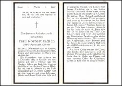 ∞ 5.2.1921 Norbert Eicken aus Baal; 1 K., mit 11 Monaten †; Lange Krankheit; |