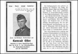 Gefallener 2. Weltkrieg; Eltern: Hubert Esser u. Anna Maria geb. Bodden; Schreinerhandwerk; 1940 RAD, Dez. 1940 zur Wehrmacht; Russland |