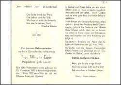 ∞ 1.3.1919 Tillmann Esser aus Erkelenz; lange, schwere Krankheit; |