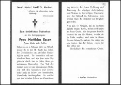 ∞ Matthias Esser; fast 60 J. Ehe; 14 K., davon 8 †; Druck in Hochneukirch |