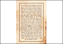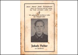 Gefallener 2. Weltkrieg; Eltern: Josef Feiter u. Sibylla geb. Steffens; Metzgerhandwerk; 9.5.1944 Einberufung; Heldenfriedhof Libau, Kuland |
