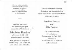 Trauernde: Anneliese u. Silke Fleschen; Wohnort: Borschemich |