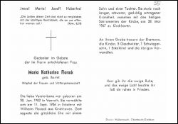 ∞ 11.9.1936 in Erkelenz Wilhelm Florack aus Kirchhoven; 2 K.; lange, schwere Krankheit |