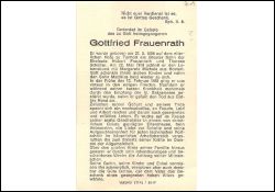 Eltern: Hubert Frauenrath u. Therese geb. Schüller; ∞ 22.5.1919 Margarete Michels aus Hostert; 7 K., davon Sohn Matthias früh †; bäuerlicher Betrieb |