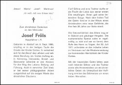 Hauptlehrer i. R.; Lehrtätigkeit in Körrenzig, Holzweiler, Broich u. Baesweiler; 6 K. aus 1. Ehe, davon 3 † ; in 2. Ehe mit Witwe eines Amtsbruders 28 J. verheiratet |