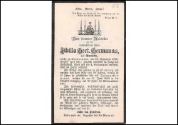 89 J.; gänzlich entkräftet infolge Wassersucht; 41 J. Ehe mit Johann Germanns, † 14.6.1846; 23 J. lang Witwe; Kind(er) |