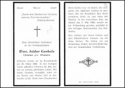 ∞ Isidor Goebels, †; 1 Tochter; Druck in Wanlo |