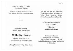 Hinterbliebene: Anna Goertz u. Kinder; Wohnort: Holzweiler |