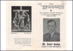 Gefallener des 2. Weltkrieges; 24 J.; Leutnant bei der Flak; Eltern: Leonhard Hahn u. Helene geb. Brunen; Messdiener; Herbst 1940 Hochschulreife; 1.10..1940 zur Wehrmacht; 1 Bruder in russischer Kriegsgefangenschaft |