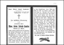 83 J.; Altersschwäche; ∞ Heinrich Joseph Hansen, nach 40 J. Ehe †; 6 überlebende Kinder |