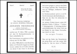 Mitgl. Kirchenvorstand Keyenberg; ∞ 1908 Elisabeth Kiggen aus Kückhoven; 6 K., davon 2 †, darunter 1 Sohn im 2. Weltkrieg gefallen; Druck in Hochneukirch |