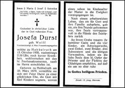 Vorstandsmitgl. d. Mar. Frauenkongregation; ∞ Peter Durst; 5 K, davon 1 früh † |