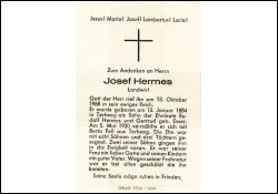 Eltern: Rudolf Hermes u. Gertrud geb. Esser; ∞ 5.5.1920 Berta Fell aus Terheeg; 11 K., davon 2 Söhne †; |