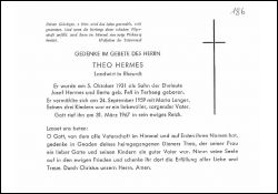 Eltern: Josef Hermes u. Berta geb. Fell; ∞ 24.9.1959 Maria Langer; 3 K. |
